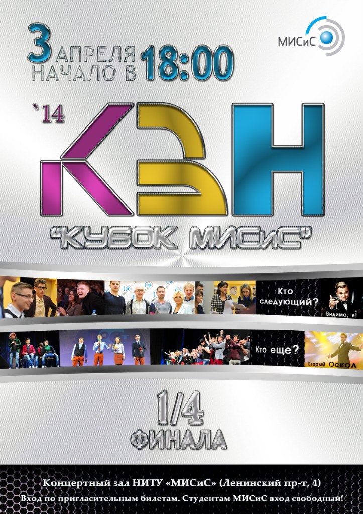 3 апреля Концертный зал НИТУ «МИСиС» 1/4 финала «Кубок МИСиС»