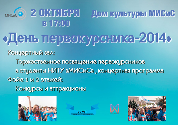 2 Октября в 17-00 в ДК НИТУ «МИСиС» состоится День первокурсника 2014