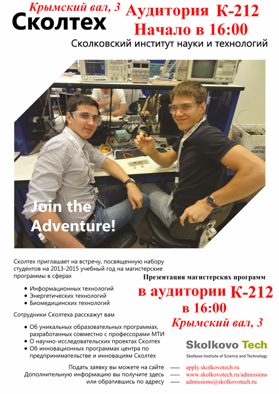 Сколковский институт науки и технологий приглашает на встречу студентов старших курсов.