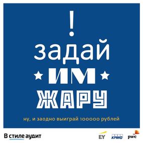 Третий сезон совместного проекта EY, KPMG, PwC «В стиле аудит» объявляется официально открытым! В этом году мы намерены произвести настоящую перезагрузку из студента в аудитора, а, значит, тебя ждут: всероссийская онлайн-игра «Битва в стиле аудит» для студентовРегистрация на «Битву» уже открыта на сайте inauditstyle.ru. Собирай команду, задай жару и заодно выиграй 100 000 рублей!
