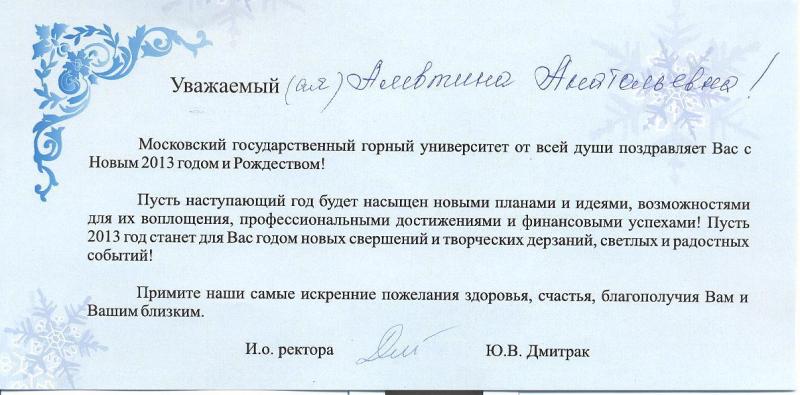В новом году МИСиС как один из ведущих технологических вузов страны получил немало поздравлений от первых лиц государства, руководителей крупнейших промышленных предприятий и от своих коллег. Благодарим всех вас за теплые слова в наш адрес и желаем вам успехов и процветания в новом году!