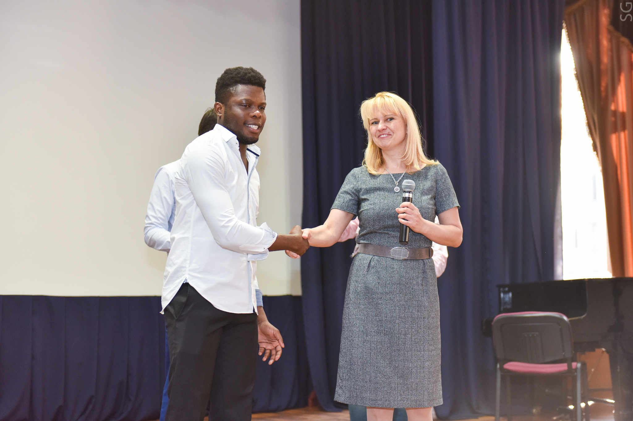 Масамба Ках, руководитель магистерской программы по солнечной энергетике, поприветствовал участников и гостей праздника в своем видео-обращении. По случаю Дня Африканского союза Управление международной академической мобильности (УМАМ) подготовило небольшой подарок для самых активных членов объединения — памятные футболки с логотипом университета.
