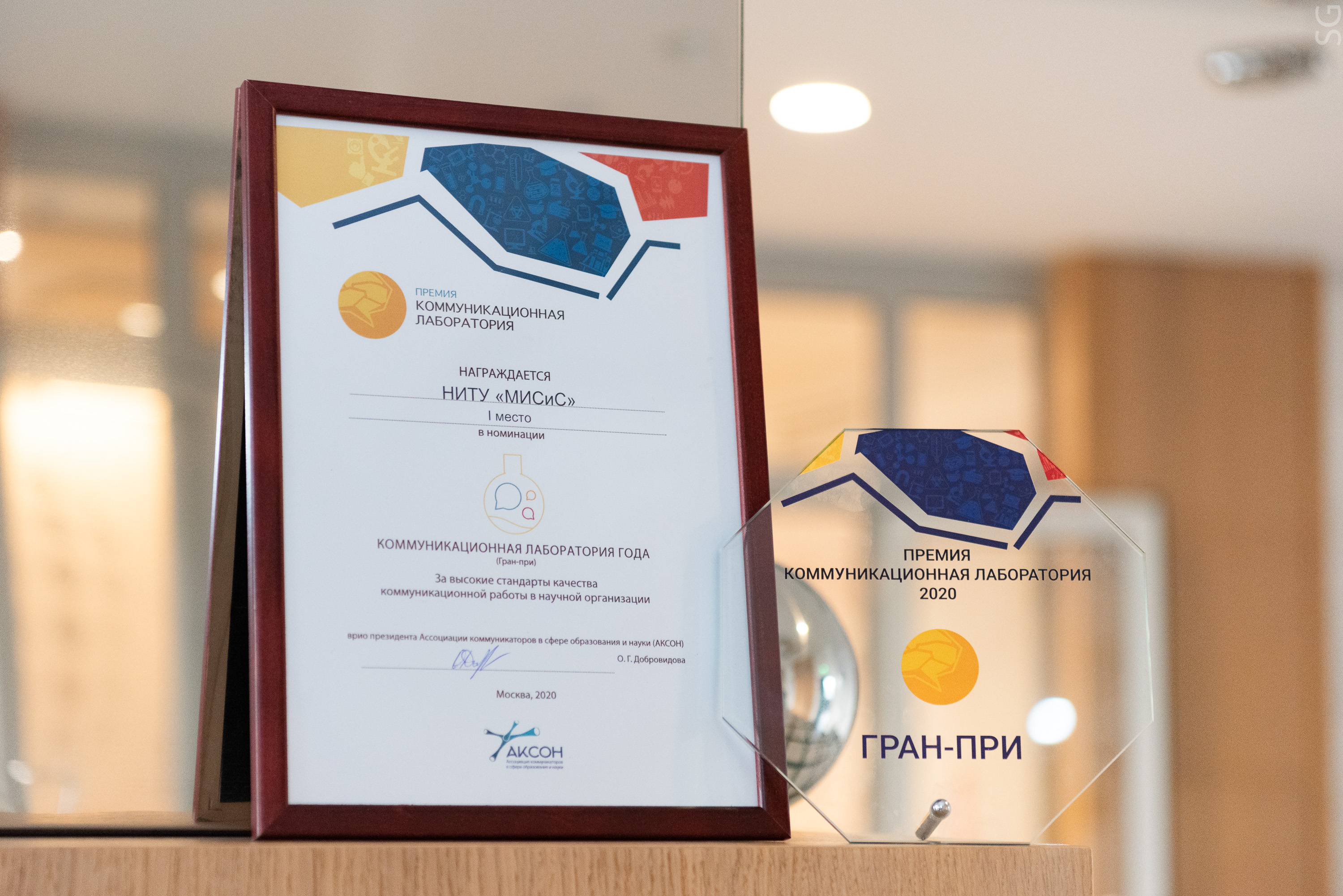 Управление маркетинга и коммуникаций НИТУ «МИСиС» стало обладателем гран-при премии «Коммуникационная лаборатория» за высокие стандарты работы. Это первая в России профессиональная премия в области научной коммуникации, учрежденная в 2014 году Ассоциацией коммуникаторов в сфере образования и науки и Российской венчурной компанией, которая вручается на ежегодном Всероссийском форуме научных коммуникаторов.