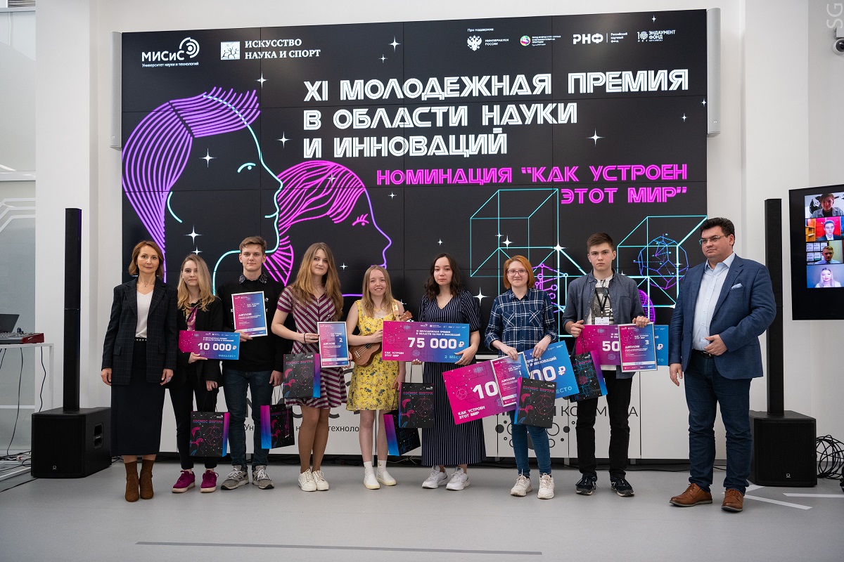 27 мая 2021 года в НИТУ «МИСиС» подвели итоги XI Молодежной премии в области науки и инноваций, проходящей при поддержке Министерства науки и высшего образования РФ. Конкурс направлен на поиск талантливых студентов и школьников, интересующихся наукой, со всей страны. В этом году свои работы прислали более 300 участников 64 городов России. Призовой фонд составил более 1 млн рублей благодаря вкладу благотворительного фонда «Искусство, наука и спорт» в эндаумент-фонд НИТУ «МИСиС». В числе партнеров — Российский научный фонд, ГК «Росатом» и ФИОП «РОСНАНО», ведущие университеты и академические институты.