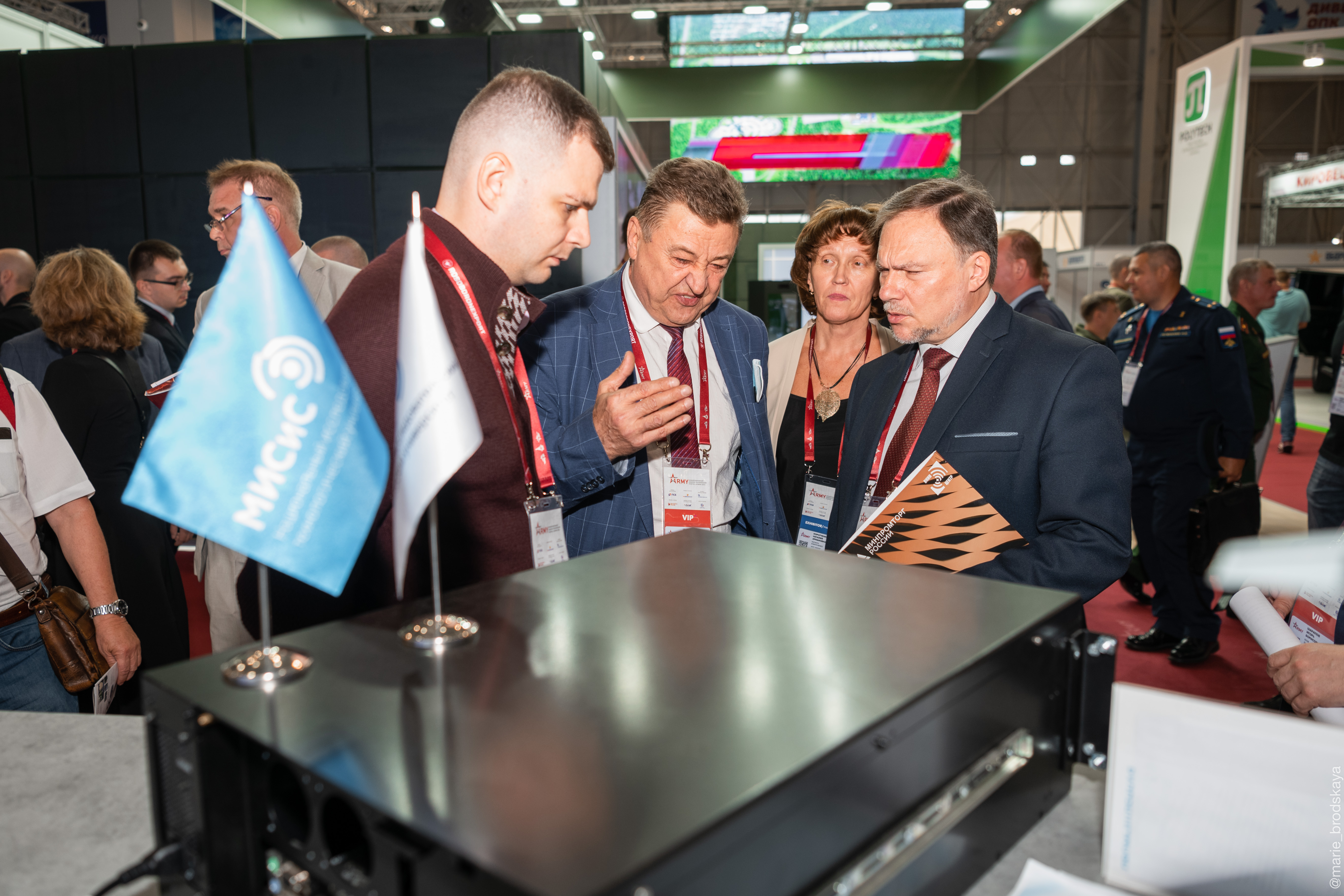 В этом году на стенде представлены: квантовый генератор случайных чисел, «умный костюм», представляющий собой систему цифрового дублирования деятельности работников, спроектированный сотрудниками кафедры Автоматизированных систем управления в рамках совместного проекта с Департаментом градостроительной политики и Департаментом информационных технологий Москвы, перспективные перовскитные фотоэлементы, разработкой которых занимаются молодые ученые лаборатории «Перспективная солнечная энергетика».