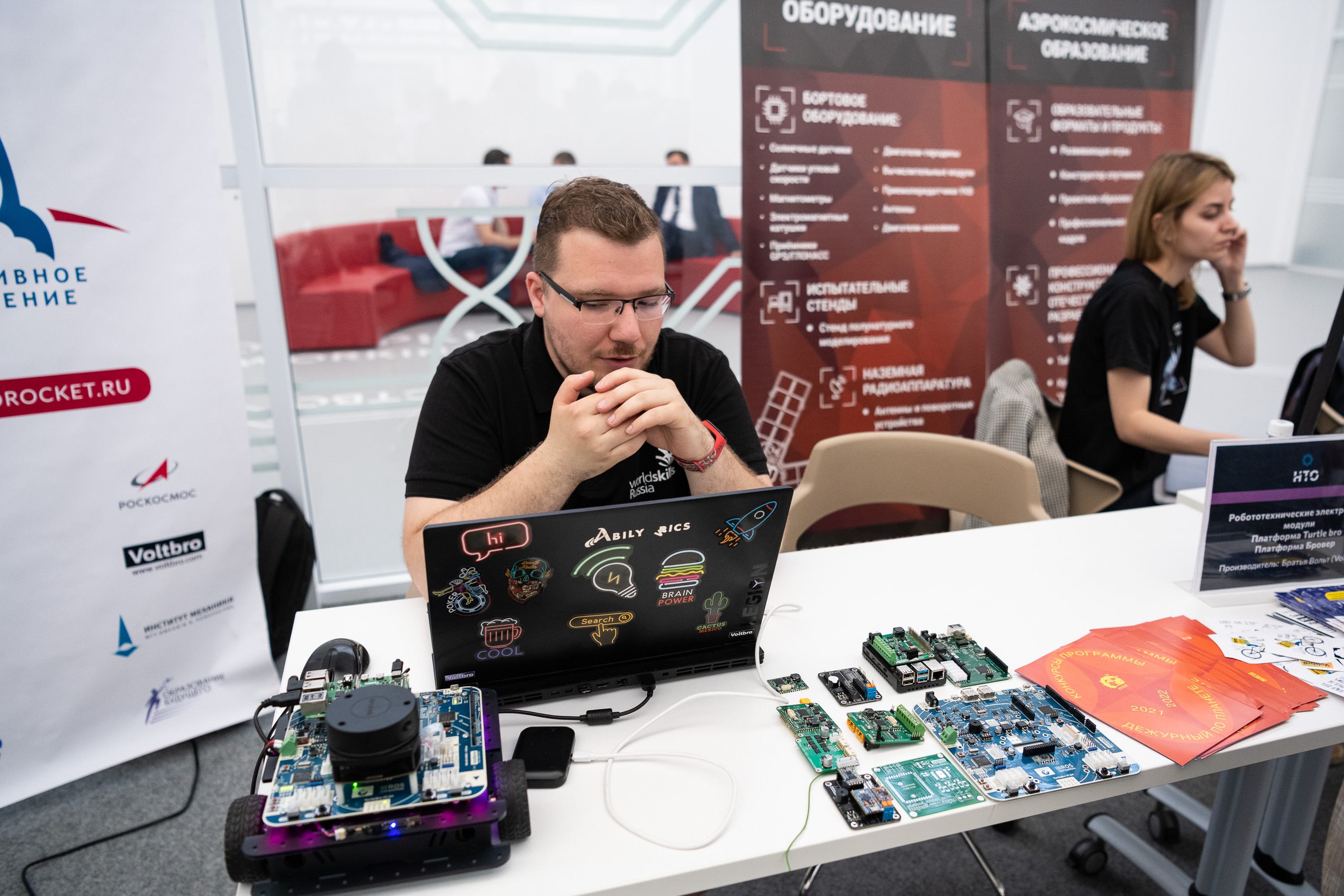 В программу мероприятия вошла выставка лучших проектов Национальной технологической олимпиады (НТО), где участники могли познакомиться с проектами и решениями в сфере робототехники, беспилотных транспортных средств, нейротехнологий и космической инженерии. В выставке приняли участие разработчик учебных лабораторий и конструкторов для изучения основ нейротехнологий BiTronics Lab и лидер в области летающей робототехники компания «Коптер Экспресс». Свои решения также представила компания «Братья Вольт» — разработчик курсов, соревнований и оборудования для инженерного образования в области аэрокосмической инженерии и робототехники.