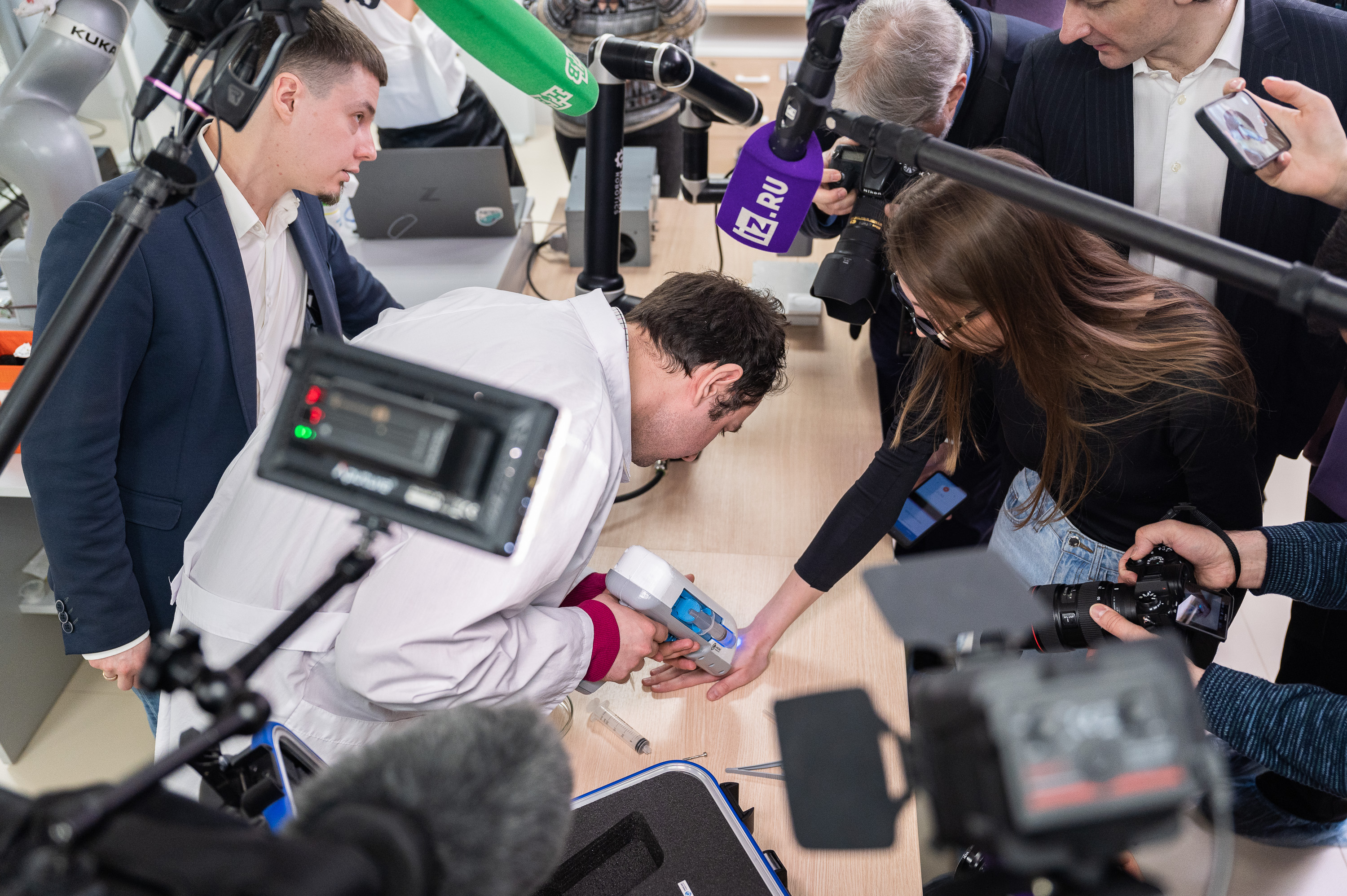 В Университете МИСИС представили первый в России «тканевой пистолет», который может останавливать кровотечения и запускать регенеративные процессы при ранениях легкой и средней степени тяжести. Устройство, созданное в лаборатории тканевой инженерии и регенеративной медицины, предназначено для работы в военно-полевых условиях и в зоне ЧС. Федеральной службой по интеллектуальной собственности выдан патент.