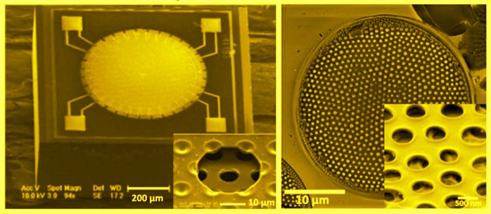 Один из руководителей исследования, заведующий лабораторией биофотоники Сколтеха профессор Дмитрий Горин, добавил: «Мы считаем, что дальнейшее исследование панцирей диатомовых водорослей сделает возможными прорывные технологические решения, от мембран для оптоакустических эндоскопов или MEMS-микрофонов, даже внешне напоминающих эти водоросли [см. изображение ниже], и вплоть до новых композитных материалов, которые будут воспроизводить структуру диатомеи с добавлением других компонентов и функций».
