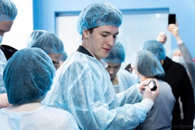Студенты посетили операционную, в которой применяются радиофармпрепараты. Врач-онколог Федор Трифонов прочитал участникам студенческого тура лекцию о том, как именно устроен процесс лечения на передовом оборудовании в МРНЦ им. А.Ф. Цыба, пока его коллеги проводили операцию пациенту.