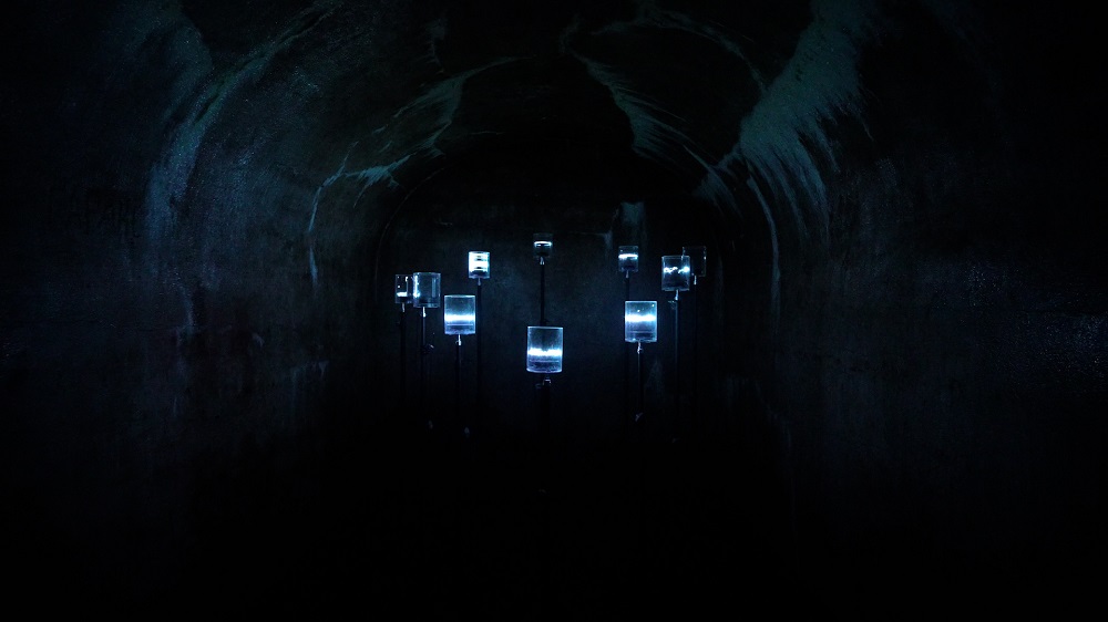 Выпускники 2024 года Александр Василенко и Глеб Иванов представили самую масштабную на выставке инсталляцию «Подземные Сигналы: Движение Земли» — аудиовизуальное исследование подземных феноменов. В