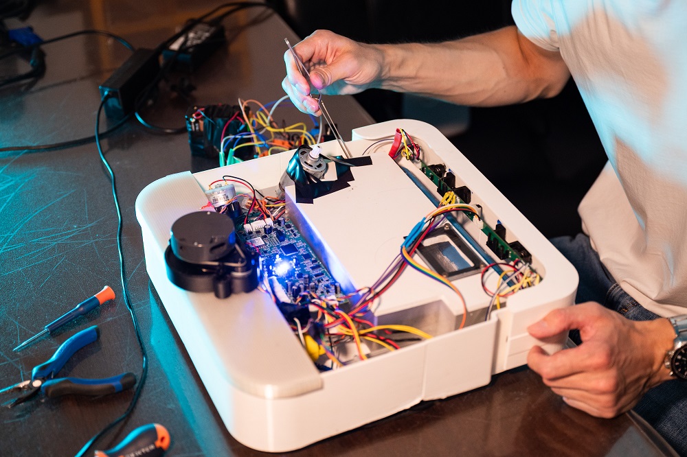 Студенты Университета МИСИС представили прототип улучшенного домашнего робота-пылесоса, который в отличие от существующих пользовательских моделей эффективнее справляется с работой в труднодоступных местах. Для этого в устройство встроен механизм всасывания по всей ширине корпуса и функция автоматической замены салфеток влажной уборки.