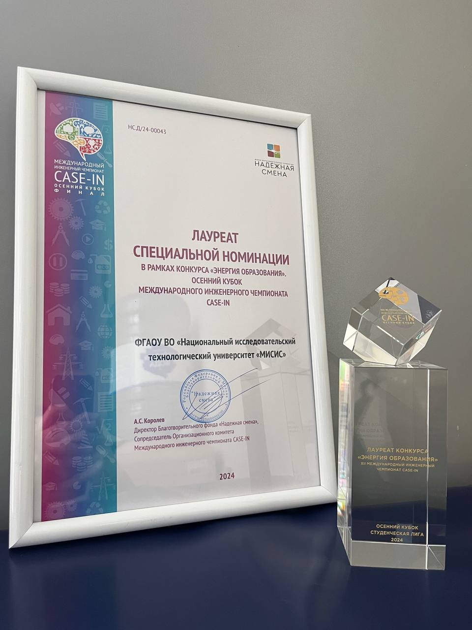 Университет получил награду в специальной номинации конкурса за вклад в продвижение и организацию Международного инженерного чемпионата CASE-IN.
