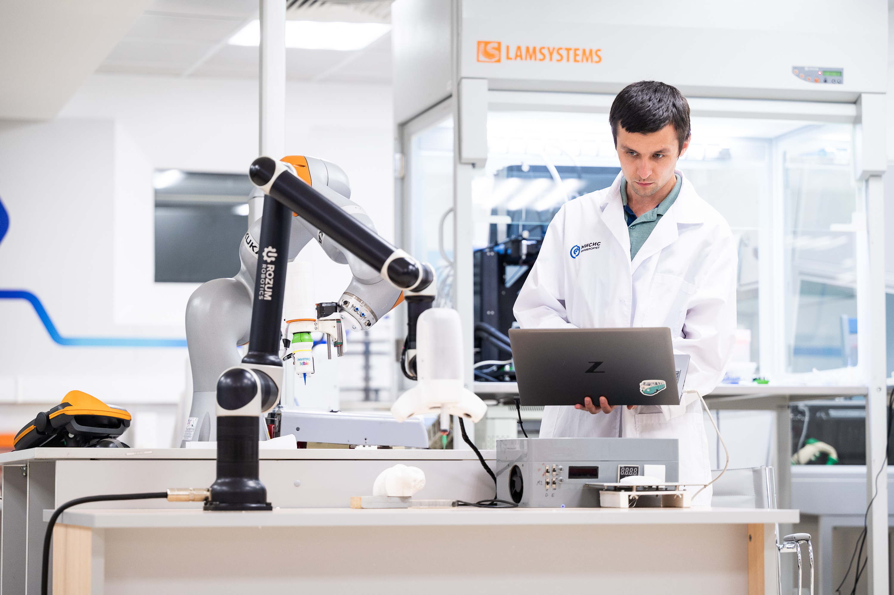 Роботическая система биопечати in situ непосредственно на тело пациента, разработанная учеными Университета МИСИС. В качестве биоматериала выступает гидрогель с добавлением клеток пациента, факторов роста и др. элементов.
