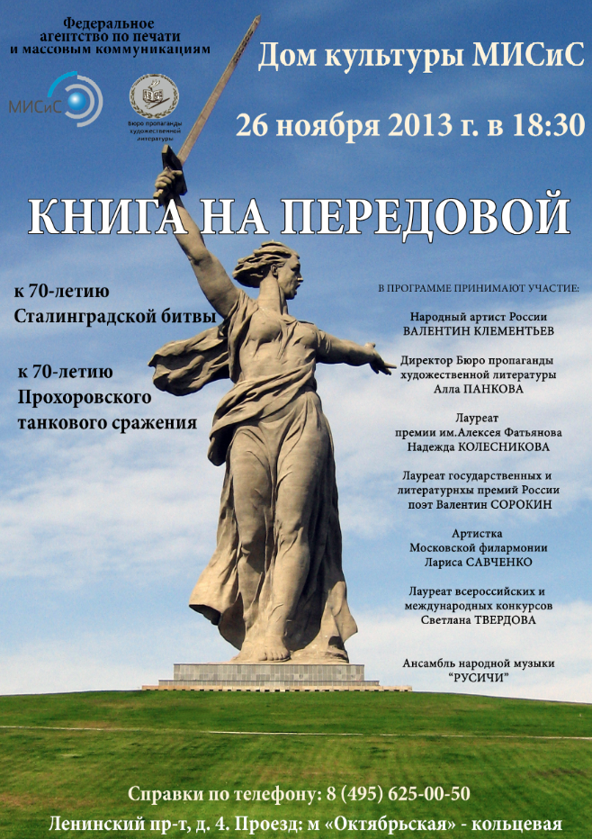 Дом Культуры НИТУ «МИСиС» приглашает на мероприятие, посвященное Место проведения: НИТУ «МИСиС», Ленинский проспект, дом 4. Проезд: м. «Октябрьская» (кольцевая)