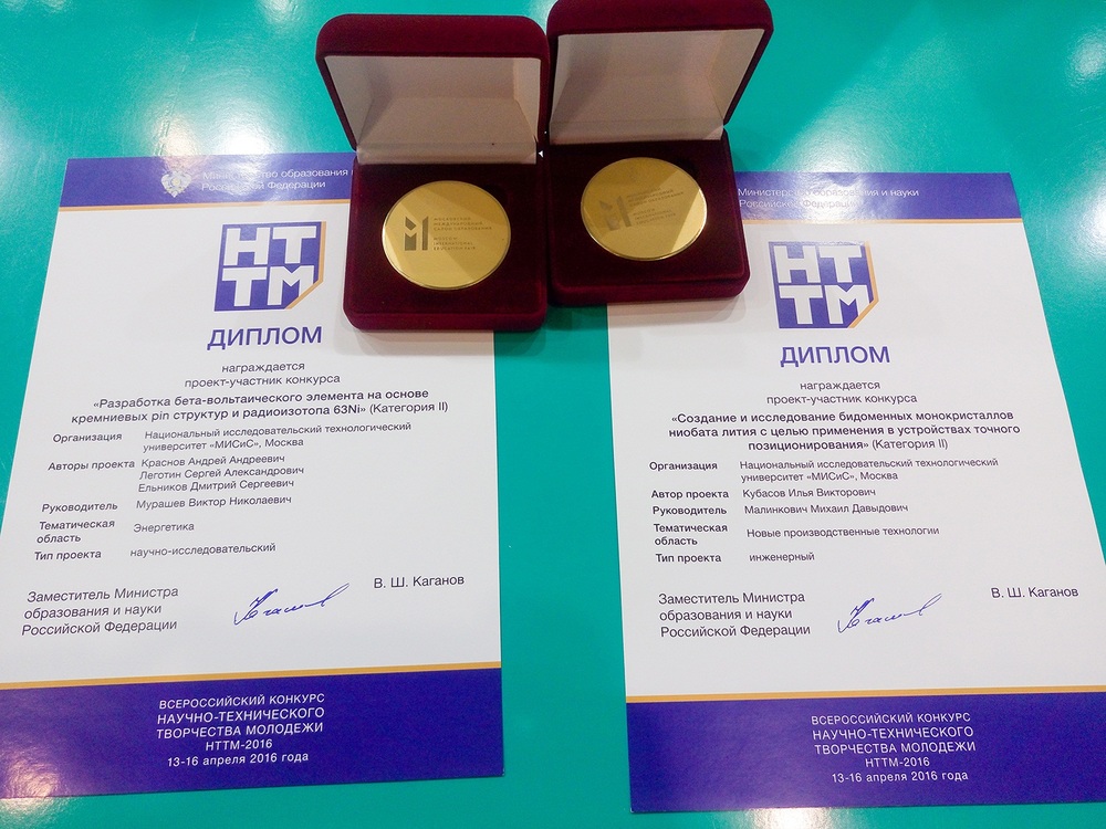 26 апреля 2016 года состоялось оглашение результатов конкурса «100 лучших изобретений России» — ежегодного отбора, проводимого Роспатентом России. Из 34 706 изобретений, запатентованных в России в 2015 году, было отобрано 92 лучших, в число которых вошли и 6 инновационных разработок ученых НИТУ «МИСиС».