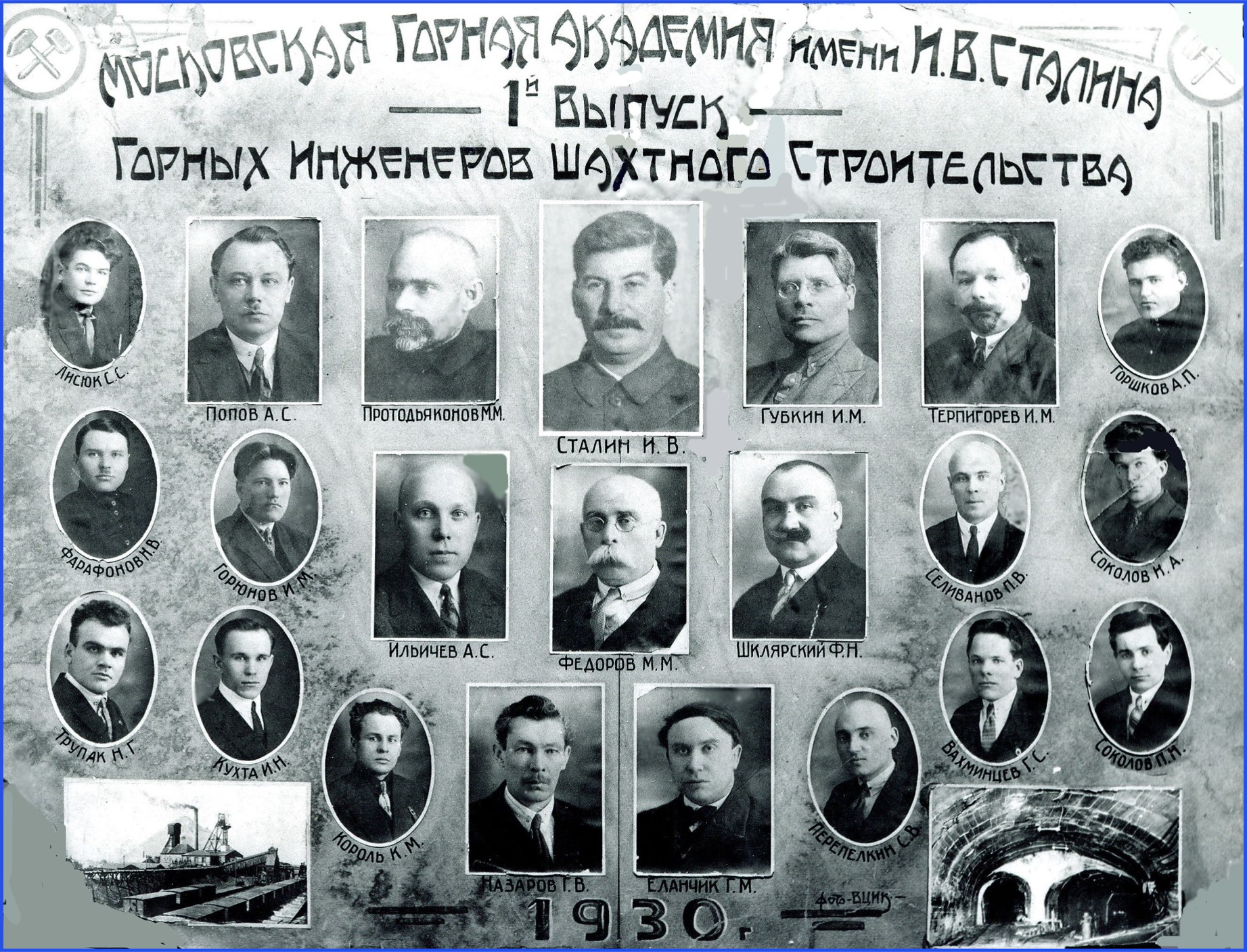 Первый выпуск горных инженеров шахтного строительства в Московской горной академии, 1930 г.