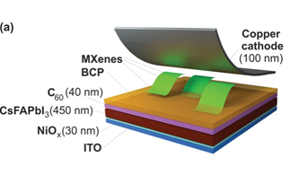 | Пористые структуры на основе GaN для светоизлучающих диодов | Схематичная конструкция солнечного элемента на основе перовскита CsFAPbI3 c MXenes-BCP слоем |